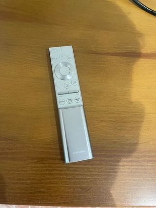 Mando a distancia de diseño moderno y elegante para Smart TV Samsung. - Color plateado. - Botones de acceso rápido a aplicaciones.