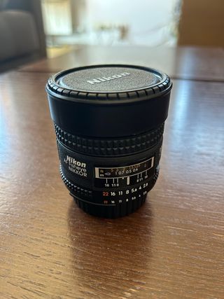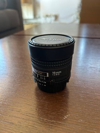Objetivo Nikon AF Fisheye Nikkor 16mm f/2.8. - Montura Nikon F. - Apertura máxima f/2.8. - Distancia mínima de enfoque: 0.25m (ft). - Escala de profundidad de campo. - Ojo de pez - En perfecto estado