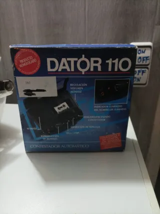 Contestador automático Dator 110. - Producto homologado por la Dirección General de Telecomunicaciones. - Indicador luminoso del número de llamadas. - Regulación de volumen y altavoz. - Tecla de reproducción de mensajes, grabación de mensajes y stop.