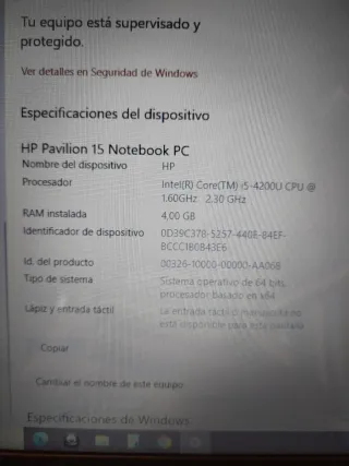Vendo portátil HP Pavilion 15 Notebook en buen estado. Procesador Intel Core i5, Gráfica Radeon, duración batería 1h, resto características aparecen en las fotos. Incluye cargador de batería. Debe formatearse porque va lento.