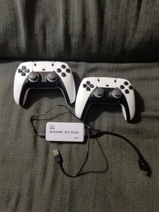 NO ENVIO Consola retro GAME STICK PRO con dos mandos. - Diseño moderno en blanco y negro. - Incluye cableado para conexión.