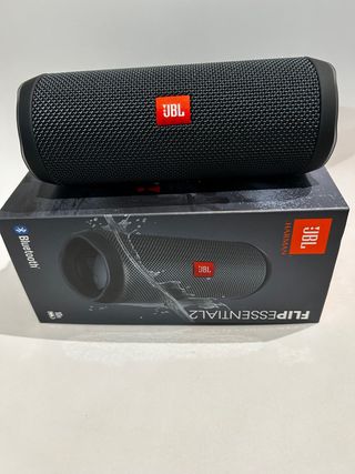 Altavoz portátil JBL Flip Essential 2 en color negro. Disfruta de tu música con un sonido potente y diseño compacto. - Resistente al agua. - Batería de larga duración. - Conexión Bluetooth.