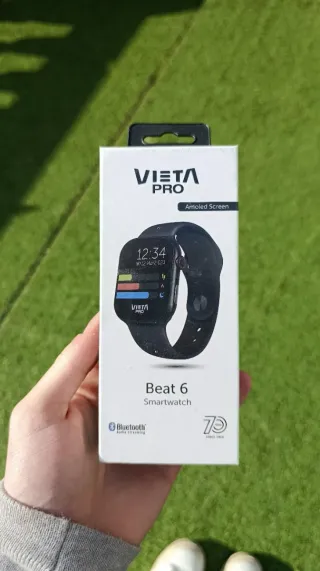 Vendo Vieta Pro Beat 6 nuevo, con film protector y a estrenar. Reloj inteligente con pantalla AMOLED de 1,96” para ver hora, mensajes y estadísticas con claridad. Con Bluetooth, compatible con Android e iOS, y resistencia al agua IP67. Monitorea ritmo cardíaco, actividad física, sueño y deportes, notificaciones del móvil y avisos de llamadas. Batería de larga duración (varios días sin cargar), correa cómoda y diseño moderno. Ideal para uso diario y deporte.