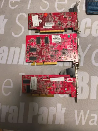 Se vende lote de tres tarjetas gráficas. - Modelos variados de la marca ATI. - Componentes electrónicos para PC. como se ve en las fotos estan bastante bien esteticmasnte. se desmontaron funcionando hace mucho tiempo