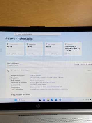 HP Laptop 15s i5-11th + 8Gb + 512Gb Funciona perfectamente y muy fluido Estado estetico en general en buen estado (Mirar fotos) Es un portatil con mucha potencia Bateria en buen estado y dura bastante Se entrega con cargador original Características: Procesador: Intel Core i5-1135G7 2.40GHz Ram: 8Gb RAM Disco Duro: 513GB SSD Pantalla HD de 15,6” Pulgadas Modelo: HP Laptop 15s-fq2810nd Teclado Español Windows 11 Home