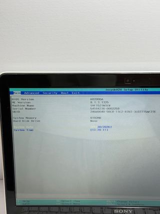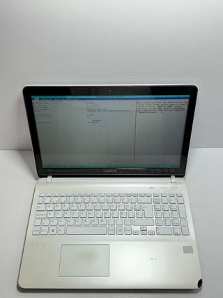 Sony Vaio SVF152A29M Estado estético en condiciones aceptables Carcasa esta un poco rota (Mirar la ultima imagen) Funcionalmente esta bien Batería funciona Se entrega con cargador Características: - Modelo: SVF152A29M - Procesador: Intel Core i5-3th - RAM: 8 GB - Sin Disco duro - Pantalla: 15,6” ⚠️ Importante: el portátil NO tiene Windows instalado, solo hace falta poner un disco y instalar Windows para usarlo.
