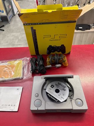 Consola PlayStation 2 FAT en buen estado, cuidada. - Incluye consola. - Incluye mando. - Incluye cables. - Incluye juego Space Invaders. - Incluye manuales.