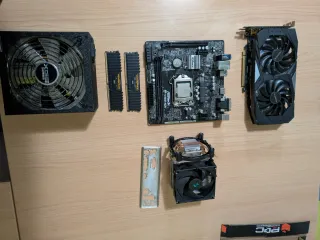 Conjunto de componentes para montar tu propio PC. - Placa base ASRock CORE I7 8700. - Tarjeta gráfica Gigabyte 1660. - Dos módulos de memoria RAM XPG (32GB DDR4). - Disipador de CPU Deepcool. - Fuente de alimentación 700W. #pc #gaming #componentes #grafica #ram #cpu #gpu