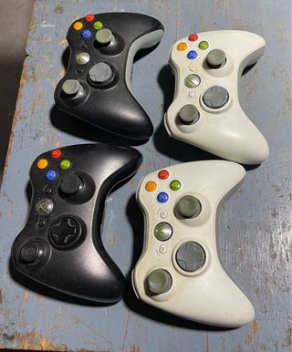 Consola Xbox 360 en color blanco y negro, con juegos y mandos incluidos. - Incluye tres consolas Xbox 360. - Se incluyen 4 mandos, cables, conectores y 25 juegos. - Ideal para coleccionistas o para revivir la experiencia de juego