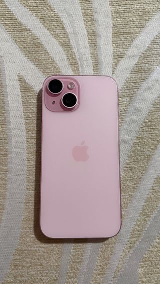 Teléfono móvil iPhone 15 en color rosa. - Diseño elegante y moderno. - Acabado metálico. - rajita en la pantalla que para nada afectan a su uso. Como nuevo usado muy poco - Aun tengo caja y cargador.