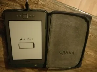 Lector de libros electrónicos Amazon Kindle en color negro y gris, con su funda. - Pantalla de tinta electrónica. - Diseño compacto y ligero.