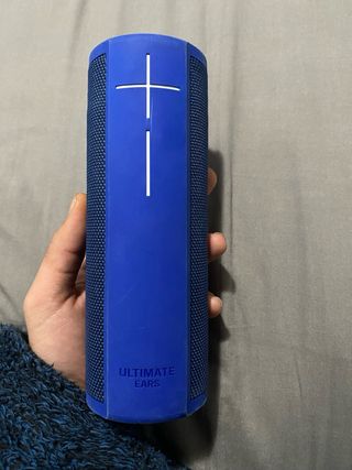 Altavoz portátil Ultimate Ears Blast en color azul. - Diseño cilíndrico. - Revestimiento de malla. - Botones de control en relieve. - Tiene Alexa - Resistente al agua y al polvo. - Conectividad Wi-Fi y Bluetooth.