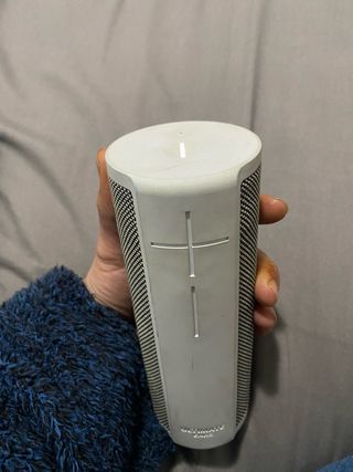 Altavoz portátil Ultimate Ears Megablast. - Diseño cilíndrico. - Revestimiento de malla. - Botones de control en relieve. - Tiene Alexa - Resistente al agua y al polvo. - Conectividad Wi-Fi y Bluetooth.