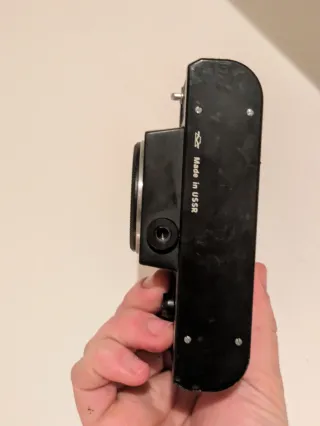 Cuerpo de cámara en muy buen estado, siempre con funda. Casi perfecta de pintura salvo por unas rozaduras en el la zona del pentaprisma. Funciona el arrastre, las velocidades y el obturador a la perfección.