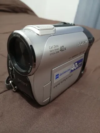 La Sony DCR-DVD106 es una videocámara Handycam compacta que graba video de definición estándar directamente en discos Mini DVD (-R/-RW/+RW/+R DL), diseñada para facilitar el almacenamiento y reproducción inmediata. Cuenta con una lente Carl Zeiss Vario-Tessar, zoom óptico de 40x y una pantalla táctil LCD de 2.5 pulgadas para un manejo sencillo. Características principales de la Sony DCR-DVD106: Formato de grabación: DVD (DVD-R/-RW/+RW/+R DL), compatible con formatos Vídeo y VR. Óptica: Lente Carl Zeiss Vario-Tessar de alta calidad con zoom óptico de 40x y zoom digital de 2000x. Sensor y Video: Sensor CCD de 1/6 pulgadas con 800,000