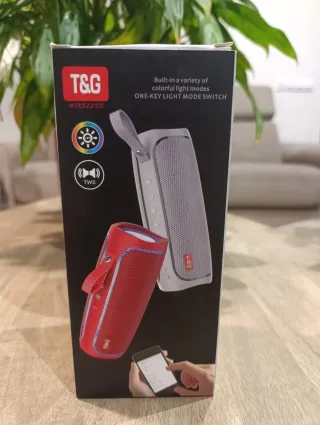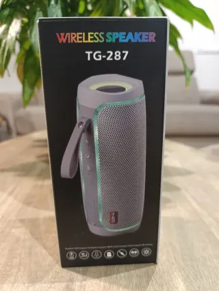 Altavoz inalámbrico TG-287 en color gris. Compacto y portátil. - Soporta TWS. - Soporta Radio FM. - Soporta USB/TF Card. - Soporta AUX. - Soporta iluminación LED. - Sin usar