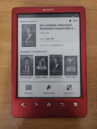 Lector de libros electrónicos Sony Reader PRS-T3 en color rojo. Disfruta de tus lecturas digitales con este dispositivo. - Pantalla de tinta electrónica. - Diseño compacto y ligero.