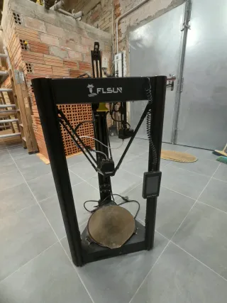 Impresora 3D FLSUN en color negro. - Diseño de marco abierto. - Pantalla táctil integrada. - Base de impresión redonda.