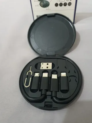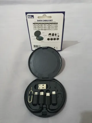 Práctico set de cables de datos y carga multifuncional con capacidad de 60W. - Incluye varios tipos de conectores. - Diseño compacto y portátil. - Ideal para llevar en cualquier lugar.