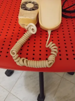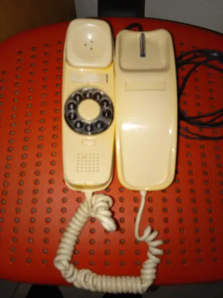 Teléfono antiguo con diseño clásico. Tiene un pequeño desconchón específico en foto ver fotos - Marcación por disco. - Auricular con cable en espiral.