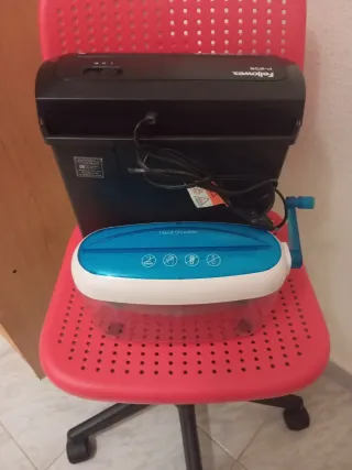 Trituradora de papel Fellowes modelo P-25, ideal para uso en oficina. Incluye una trituradora manual adicional te doy como regalo al comprar la otra - Trituradora eléctrica Fellowes P-25. - Trituradora manual con manivela. - Diseño compacto y funcional.