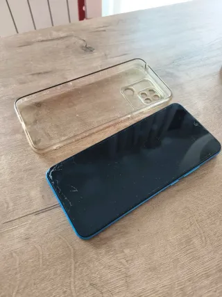 Teléfono móvil Xiaomi Redmi con funda protectora transparente. - Pantalla con algunas grietas. - Funda de silicona transparente. Pantalla rota pero funcionamiento correcto