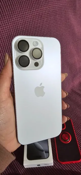 Teléfono móvil iPhone 16 Pro en color plata. - Protector de pantalla, lentes cámara y funda incluida. - Batería 100% - Diseño elegante y moderno. - Acabado metálico brillante. - Caja abierta no se uso porque me regalaron otro.