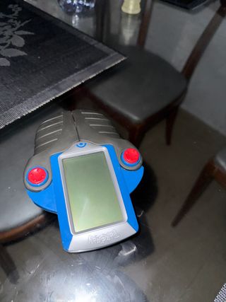 Juego electrónico portátil de la marca Pokemon. - Diseño ergonómico en color azul y gris. - Pantalla LCD. - Dos botones de control rojos.