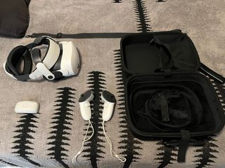 Visor de realidad virtual Meta Quest 3S con 128GB de almacenamiento. Entrego con extras: maleta de transporte, correa bobovr con bateria externa, hace menos de 1 año que las tengo, conservo tiquet de compra pero caja y correa original no, usada pocas veces