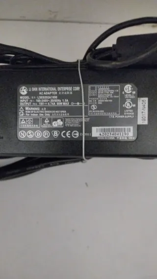 Adaptador de corriente para ordenador portátil. - Modelo: LSE0202A1990 - Entrada: 100-240V~50/60Hz 1.5A - Salida: 19V 4.74A 90W MAX - Uso en interiores únicamente. - creo que es de un Lenovo.