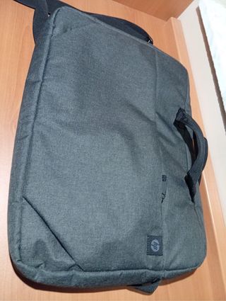 Funda para portátil HP de color gris oscuro. - Material textil resistente. - Asa de mano superior. - Correa para hombro. - Bolsillo frontal con cremallera.