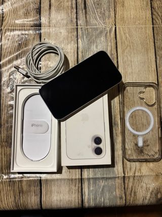 Teléfono móvil Apple iPhone 16 en color blanco. Incluye su caja original y cable de carga. - Modelo: iPhone 16 - Color: Blanco - Incluye: Caja original y cable de carga USB-C a Lightning - Funda protectora transparente con MagSafe 2 cristales templados con aplicador