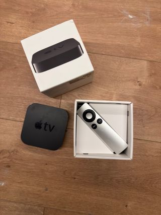 Dispositivo Apple TV en color negro, con su caja original y el Remote plateado. - Incluye el Apple TV. - Incluye la caja del Apple TV.