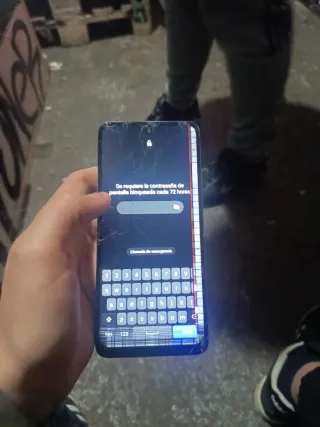Teléfono móvil Oppo A60 en color negro. La pantalla muestra un mensaje de bloqueo. - Pantalla con grietas visibles. - Marco de color negro.