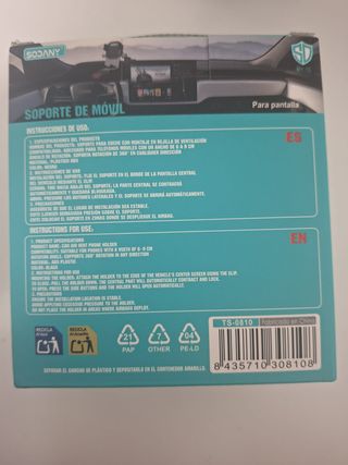 Soporte para móvil de la marca SODANY, modelo HY-10. No se ha usado, conserva embalaje original. Lo vendo porque no sirve para mi coche.