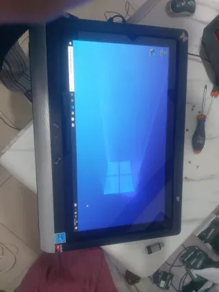 Portátil Acer con pantalla táctil que se puede doblar. - Diseño convertible. - Acabado en gris y negro.tiene daño estético por fuera como un raspón que eso con una pegatina chula queda perfecto por dentro intacto