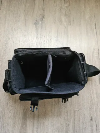 Bolso de color negro para cámara. - Compartimentos acolchados. - Correa ajustable. - Cierre de cremallera. NO LEER - Nikon Canon Pentax Olympus Yashica Mamiya Contax Leica Sigma Kenko Tamron Tokina Sony Vivitar Minolta Minox Rollei Voigtlander Zeiss Lowepro Kata Vanguard Manfrotto Benro