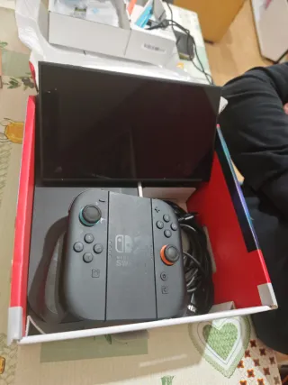 Consola Nintendo Switch v1 con mandos en azul y negro. Los mandos me los vendieron como originales,sin drift aparentemente(Pero el R del negro no funciona),originales,tienen el logo de Nintendo detras y pueden leer Amiibos.La pantalla está en perfecto estado.Tiene un protector roto en una esquina,si quieres puedes quitarlo o dejarlo pero la pantalla está en perfectas condiciones. La patilla trasera está,no niego alguna marca de uso aunque yo no vi. Funda versión Super Mario incluida en perfecto estado para Switch (1). Era un regalo para un amigo que a final por cosas no me sirve,si gustas te la vendo con una Monster de mango