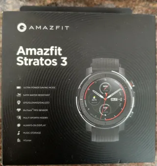 Reloj inteligente Amazfit Stratos 3 en color negro y gris. Cuenta con una pantalla siempre activa y es resistente al agua. - Modo de ahorro de energía ultra. - Resistencia al agua 5ATM. - GPS/GLONASS/GALILEO. - Sensor BioTrack PPG. - Múltiples modos deportivos. - Almacenamiento de música. - VO2 max. Se vende con su caja original y su cargador. Solo venta en persona.