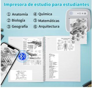 Impresora portátil compacta, ideal para imprimir imágenes sin necesidad de tinta. Incluye varios rollos de papel. - Diseño moderno y funcional. - Conexión USB para carga y transferencia de datos. - Botón de encendido con luz indicadora. - Indicadores de estado (Bluetooth, carga). - Incluye 6 rollos de papel. - Cable de carga USB incluido.