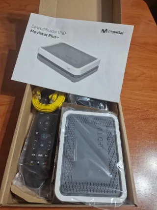 Descodificador UHD de Movistar Plus+. - Incluye mando vocal Bluetooth - Incluye cable de red amarillo.