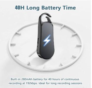 Grabador de voz portátil con gran capacidad de almacenamiento. - 64GB de memoria interna. - Diseño compacto y elegante. - Incluye accesorio para colgar.