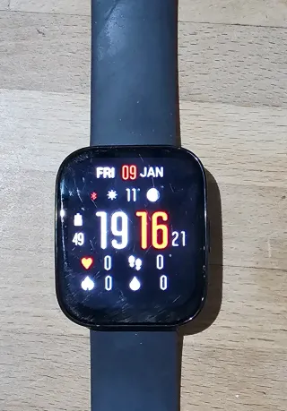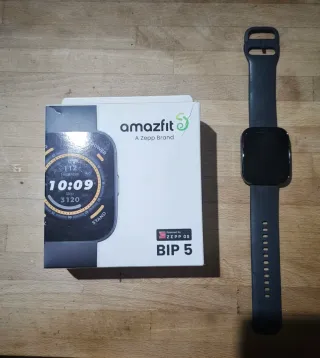 Smartwatch Amazfit Bip 5 en color negro y azul marino. - Pantalla a color. - Monitor de ritmo cardíaco. - Seguimiento de pasos. Bastante usado pero con funcionamiento impecable