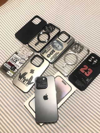 vendo iphone 14 pro en perfectas condiciones no tiene ni un rallon lo vendo con caja original cargador y varias fundas protectoras cualquier duda preguntar