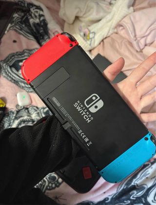 Consola Nintendo Switch en colores azul y rojo, lista para horas de diversión. - Incluye base de carga. - Adaptador de corriente. - Cable HDMI. - Un mando adicional. - Estuche de transporte. -joycons roto - Un mando a parte que sale en la foto