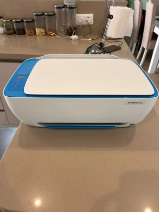 Impresora multifunción HP DeskJet 3639 en excelente estado, casi nueva. Incluye manuales de instrucciones. - Diseño moderno en blanco y azul. - Ideal para hogar u oficina pequeña.