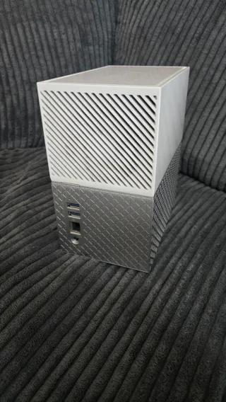Dispositivo de almacenamiento en red My Cloud Home Duo. - Diseño moderno en blanco y plateado.