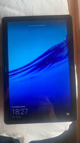 Tablet Huawei con pantalla de 10 pulgadas. Tablet Huawei MediaPad T5 en perfecto estado. Apenas usada. Encendida en 3 ocasiones. -Sistema operativo Android -Procesador de 8 núcleos batería de gran capacidad y duración de 5100 mAh -Pantalla táctil de 10 pulgadas Full HD WUXGA (1920 x 1200), -Procesador Kirin 659 Octa Core A 53 -Memoria RAM de 4 Gb -Memoria interna de 64 Gb ampliable hasta 256 Gb. -Wifi, Bluetooh, GPS, altavoces, micrófono - Pantalla en excelentes condiciones. - No incluye cargador ni caja.