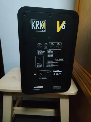 Altavoz activo KRK V6 para estudio. Diseñado para ofrecer un sonido claro y preciso. - Acabado en negro. - Tweeter de cúpula. - Woofer con cono amarillo.