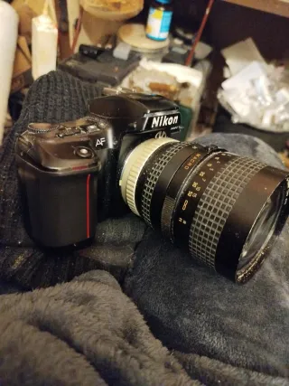 Se vende cámara réflex analógica Nikon F-801s con dos objetivos y accesorios. - Incluye objetivo Nikon 35-70mm. - Se incluye otro objetivo adicional. - Viene con su funda protectora. - Se regalan complementos.